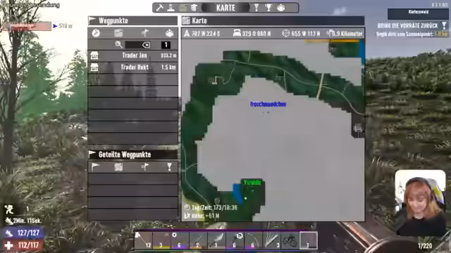 00:33:14Geplant war der Start des gemeinsamen Spiels, jedoch ist der Stream-Partner 'Froschi' zunächst nicht online. Dies führt zu einer Wartezeit und kurzen Verzögerung. Nachdem Froschi online geht, startet die Streamerin das Spiel 'Seven Days to Die'. Die beiden Spieler befinden sich an verschiedenen Orten der Spielwelt und versuchen, sich zu treffen, um gemeinsam weiterzuspielen. Dabei gibt es eine kleine Panik, da der Blutmond, eine gefährliche Spielphase, bevorsteht, und die Streamerin die Berechnung dafür mit einem selbstgeschriebenen Python-Programm überwacht.