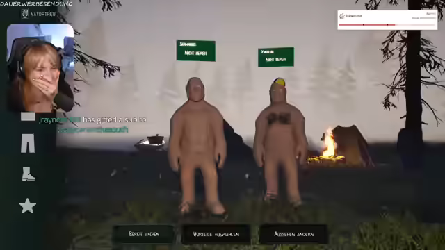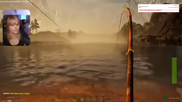 04:45:28Die Streamerin kündigte an, nächste Woche nicht dabei sein zu können, da ihre Schwiegermutter Geburtstag hat. Sie erwähnte, dass sie vielleicht später dazustoßen kann, aber nichts versprechen kann. Es gab Probleme mit dem Spiel, da der Bildschirm schwarz wurde und die Charaktere im See ertranken. Die Streamerin fing einen nackten Mann an der Angel und wunderte sich, wer das sei. Es stellte sich heraus, dass der Mann ein Hai-Arsch-Tattoo auf dem Fuß hatte. Die Streamerin wurde von Ranger geraidet, der sie im besten Anglerspiel der Welt willkommen hieß. Es gab einen Fang, der aus dem "Arsch" kam und nur 5,3 wog, was als enttäuschend empfunden wurde. Es wurde vermutet, dass die Streamerin betrogen und den Fisch aufgeblasen hat. Die Streamerin wurde für ihr verbuggtes Spiel bedauert und es wurde festgestellt, dass sie eine TNT-Stange im Inventar hatte, die sie jedoch im See fallen ließ.