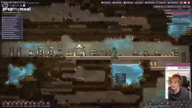 01:25:45Während des Streams wird ein technisches Problem mit der Lautstärke des Spiels bemerkt, das mit Hilfe eines Moderators gelöst wird. Nach Aufräumarbeiten wird ein Wasserbecken gebaut und der Stöpsel gezogen, um den Bereich zu fluten und zu reinigen. Dabei zeigt sich, dass das Überleben der Duplikanten gefährdet ist, wenn sie bei Arbeiten unter Wasser stecken bleiben.