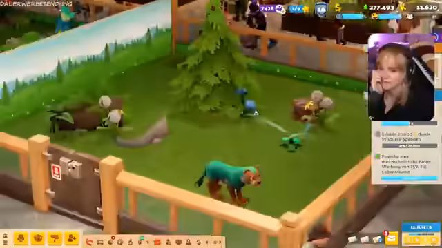 02:12:42Der Streamer berichtet von einem persönlichen Highlight, dem Tourfinale einer Metalcore-Band. Er beschreibt die schrullige und beeindruckende Show eines Clowns, was für große Begeisterung sorgte. Dies unterstreicht seinen Humor und seine Leidenschaft für alternative Musik. Nach intensiven Spiel- und Chatphasen kündigt der Streamer das Ende des Streams an. Die letzten Aktionen beziehen sich auf das Bauen weiterer Gehege und das Verabschieden sich vom Publikum.