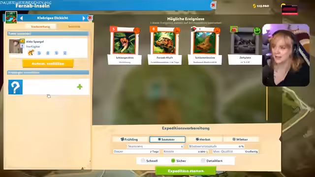 01:24:38Eine dritte Expedition liefert einen Karnevalsgeier, der ebenfalls krank ist und im Tierwohlzimmer behandelt werden muss. Der Geier stellt die nächste Herausforderung für das Museum dar. Parallel dazu erinnert die Streamerin den Chat an den weiteren Plan des Abends: gegen 18 Uhr sind gemeinsame Sessions im Spiel Dead by Daylight mit den Streamern Lily und Asics geplant. Der Fokus bleibt jedoch darauf, das neue Tierrettungszentrum erfolgreich zu etablieren.