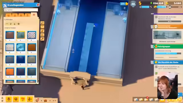 06:16:36Es kommt zu einer tiefgehenden Diskussion über die Gestaltung von Museen. Der Streamer identifiziert sich als pragmatischer, nicht als schöner Baustil, und äußert den Wunsch nach einer Datenbank mit Bauideen anderer Spieler. Nach längerem Ausprobieren werden verschiedene Boden- und Wandoptionen getestet, wobei eine „Schwimmbad“-Optik am Ende favorisiert wird. Es wird darüber gesprochen, zwei separate Museumgebäude mit einem Durchgang zu verbinden, um den Besuchern mehr Platz und eine bessere Atmosphäre zu bieten.