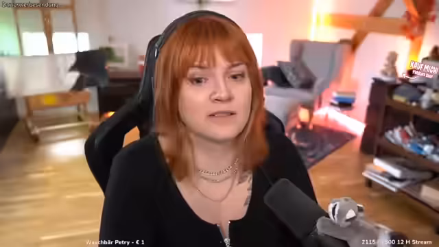01:07:39Die Unterhaltung wechselt plötzlich zum Thema Eurovision Song Contest (ESC). Es ist die Zeit fürs Live-Voting und die Stimmung ist aufgeregt. Besonders die deutsche Band Feuerschwanz wird favorisiert, deren große Fangemeinde und der Status des meistgestreamten Songs der Vorwoche hervorgehoben werden. Die Kommentatorin ist verwirrt und frustriert über eine nachträgliche Änderung des Abstimmungsmodus, die ursprünglich nur über Kofi geplant war. Man vermutet eine unlautere Manipulation, da die vorherige Abstimmung gewonnen hat und Feuerschwanz nun ausgeschlossen wurde.