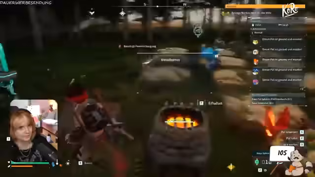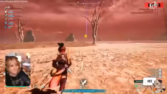 05:32:02Ein zentrales Thema ist die Jagd auf Gumus-Kreaturen, um deren Laub für die Herstellung von Pergament zu erhalten, welches für den Bau von Blumenbeeten notwendig ist. Während der Jagd erlebt die Streamerin einen unbeabsichtigten Vorfall, bei dem ein Spielfigur namens Haki durch einen selbst verursachten Explosionstod stirbt, was bei der Streamerin Entschuldigungen und Traurigkeit auslöst. Trotz dieses Rückschlags wird die Jagd fortgesetzt, da Gumus-Laubs in der gesamten Spielwelt zu finden sind. Gleichzeitig wird aktiv nach "hübschen Blumen" gesucht, die ebenfalls für den Blumenbeet-Bau benötigt werden, wobei auch der Händler als mögliche Quelle in Betracht gezogen wird.