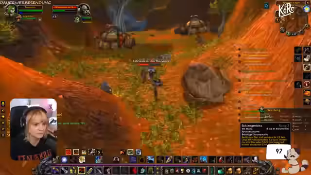 01:40:53Die persönliche Ziele im Stream sind klar definiert: das Erreichen von Level 29 ist für den Tag das absolute Minimum, während das ambitionierte Ziel Level 40 bleibt. Für Sonntag ist dann Level 30 geplant. Eine Diskussion über das World of Warcraft-Addon 'Burning Crusade' schließt sich an. Besonders die erste Raid-Instanz 'Karazhan' wird als Highlight erwähnt. Begegnungen mit Spielern der gegnerischen Fraktion werden als entspannt und humorvoll beschrieben, wobei die Kommunikation nur per Emotes möglich ist und als 'Kauderwelsch' erscheint.