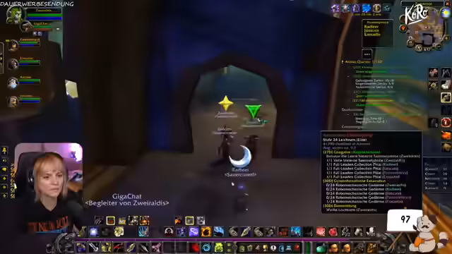 04:52:20Die Zeit nach der Instanz wurde für das Management der Gruppe und das Planen der nächsten Aktivitäten genutzt. Es wurde geklärt, wer welche Quests noch offen hat und wer weitermachen möchte. Es gab eine Verzögerung, da der Streamer sich kurz vom PC entfernen musste, aber er bat die Gruppe, auf ihn zu warten. Die Kommunikation lief über den Textchat und die Planung für die nächsten Ziele wie den Elite-Zwergen-Quest oder das Verlies wurde fortgesetzt.