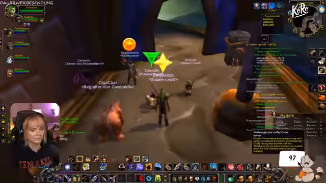 05:27:13Die Gruppe erkundet eine überfüllte Spielwelt, wodurch das Questen erschwert wird. Der Streamer entscheidet sich, bei Gnome-Erganz vorsichtiger vorzugehen und ziet weniger Gegner auf einmal, um das Risiko zu minimieren. Er verteilt die Hauptquests und verweist auf die Notwendigkeit, dass sich die Spieler gegenseitig kennen, um bei der Gruppenbildung nicht ins Stocken zu geraten.