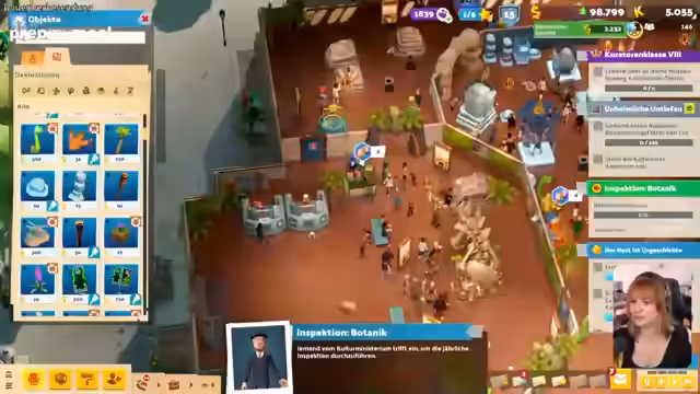 01:14:35Es wird überlegt, wie das Museum im Spiel umgebaut werden kann, wobei nach Inspirationen im Internet gesucht wird, um ein cooles Museum zu gestalten. Der Wunsch nach einer Galerie wird geäußert, in der man das schönste Museum präsentieren kann. Es wird erwähnt, dass man sich an anderen Museen orientieren könnte. Es wird auch die Herausforderung angesprochen, eine Zwei-Sterne-Bewertung zu erreichen, indem man den Quests folgt. Die Schwierigkeit, das Vorschaubild auf Instagram zu ändern, wird als frustrierend empfunden. Es wird überlegt, einen zweiten Ticketschalter und einen Kartenkiosk hinzuzufügen, um den Eingangsbereich zu verbessern, obwohl das Bauen im Spiel als nicht einfach empfunden wird.