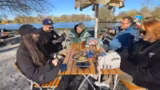 00:58:11Es gibt Pläne für eine Saarlandtour, die angeblich in einem Nachmittag absolviert werden kann, da die besten Spots bereits besucht wurden. Streamer diskutieren das günstige Tanken in Luxemburg und zeichnen dabei verrückte Szenarien. Es gibt auch Ideen, mit Holla und Sonja einen Schwimm-Donut auf der Saar zu mieten, der sechs Personen Platz bietet. Die Überlegungen reichen bis hin zur Gründung eines Friseurladens mit dem Namen "Sahara".