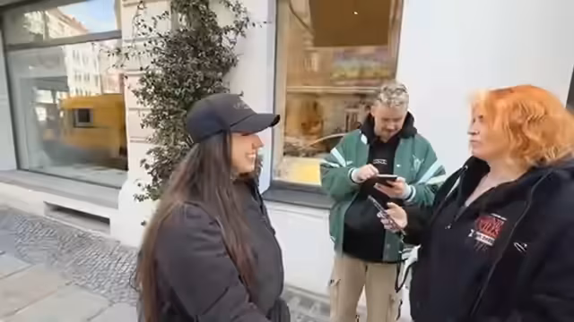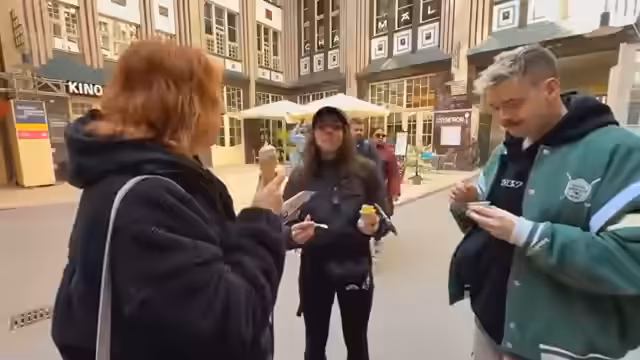 00:02:28Der Stream wird in Berlin gestartet. Nach anfänglichen technischen Problemen mit dem Bild und Ton, insbesondere der Überprüfung der Rauschunterdrückung und Lautstärke, werden die technischen Voraussetzungen schrittweise optimiert. Die Streamer Lilly, Olli und der Gast Thuri sind nun im öffentlichen Raum des Berliner Stadtteils unterwegs und interagieren mit dem Chat, wobei sie die Zuschauer dazu auffordern, sich im Chat zu zeigen und nett zu benehmen.