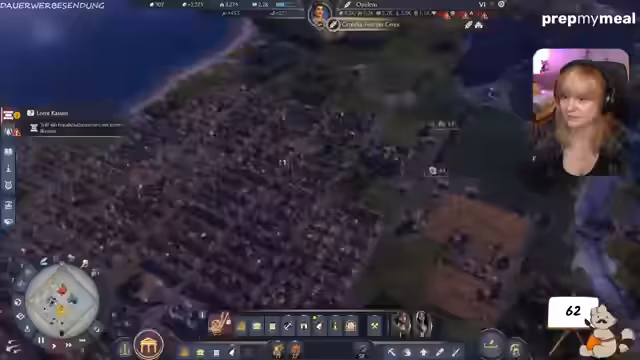 01:48:29Bei Produktionsengpässen (z. B. Holz- und Tunikenmangel) werden Notfallpläne geschmiedet, inklusive zusätzlicher Holzfäller und Hanfhöfe. Das Team erkennt einen Fehler in der Weizen- statt Haferproduktion und passt die Strategie an, um Brotversorgung sicherzustellen. Es werden Feuerwehrstationen platziert, um Produktionsausfälle durch Brände zu verhindern, und Verkaufslimits eingestellt, um Überschüsse automatisch zu vermarkten. Die Bilanz wird durch gesteigerte Einnahmen aus Bäckereien und Amphoren stabilisiert.