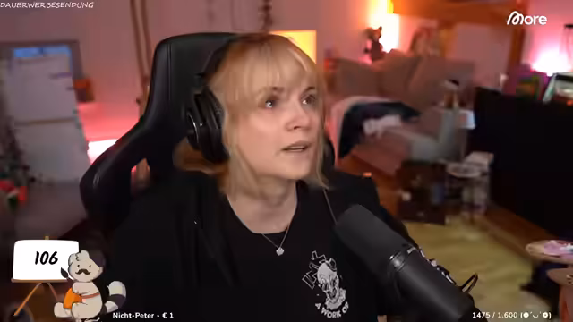 01:18:29Während des Streams treten mehrere technische Probleme auf. Die Staffelei ist instabil und eignet sich nicht für den glatten Boden, weshalb die Streamerin auf einen Teppich als Gegengewicht ausweicht. Eine neue Staffelei wird erst am Mittwoch erwartet. Zudem verkündet sie ihre Teilnahme an der D-Deko als Künstlerin mit eigenem Stand. Sie erwähnt auch ihre geplante Teilnahme an der DoCoMo und der Polaris und diskutiert die Vor- und Nachteile der Positionierung im Artist-Bereich.