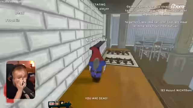 04:02:58Die Missionen des Spiels erweisen sich als chaotisch und teilweise absurde. Zu den Aufgaben gehören das Fluten der Toilette, das Zerstören von Gegenständen, das Klauen aus dem Wohnzimmer und das Abschießen von Kakerlaken. Die Spieler interagieren auf unvorhersehbare Weise mit der Umgebung, landen versehentlich im Ofen oder werden von der Gegenseite eliminiert. Der Prozess der Wiederbelebung durch 'CPR' wird ebenfalls getestet und erzeugt unangenehme Situationen.
