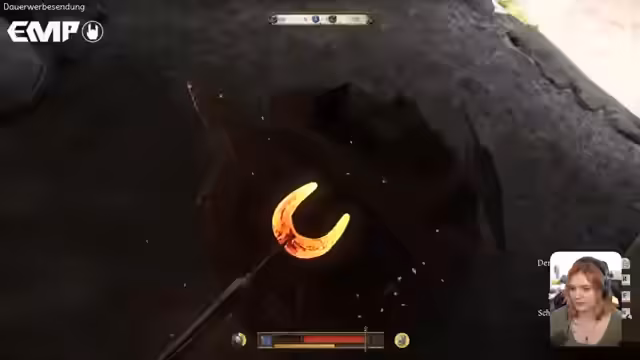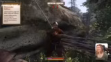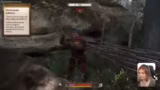 01:23:52Endlich am Zielort 'Kata' angekommen, beginnt der Streamer mit dem Training seines Charakters. EineNPC namens Heinrich bietet ihm an, seine Fähigkeiten im Umgang mit Waffen zu verbessern. Durch ein interaktives Tutorial wird der Spieler in die Grundlagen des Kampfsystems eingeführt, das aus einer Abfolge von Angriffen besteht. Neben dem Geschehen im Spiel spricht der Streamer über seine realen gesundheitlichen Probleme. Er klagt über ein schmerzendes Knie, das seinen Alltag einschränkt, und über eine persönliche Angst vor alleine schlafen, nachdem er nachts Geräusche gehört hat.
