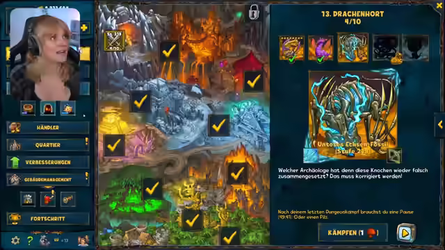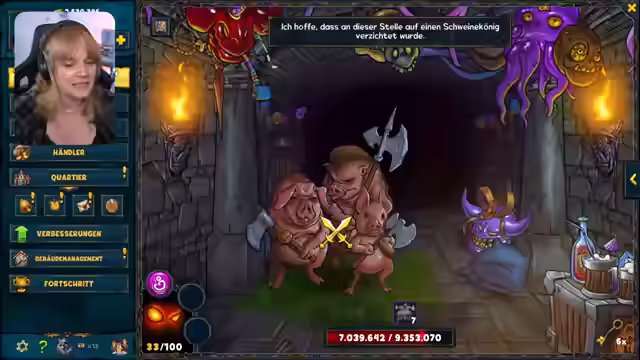 00:31:52Es wird ein legendärer Dungeon in Shakes and Fidget betreten, ein ursprünglich altes Browser-Game, das auch auf dem Handy oder über Steam gespielt werden kann. Regelmäßige Events finden statt, und aktuell gibt es einen Dungeon mit vier Bereichen und Endbossen, die coole, legendäre Gegenstände bringen. Es gibt auch einen Fahrstuhl, den man gemeinsam mit seiner Gilde machen kann. Nach der ersten Runde im Dungeon werden Boni wie die Verringerung des Schadens durch Monster oder die Erhöhung der Chance auf unverschlossene Türen gewählt. Es geht in die zweite Stufe, den Partykeller, wo es verfluchte Türen und verschiedene Charaktere gibt. Es werden Schlüssel gesammelt und am Glücksrad gedreht, um Boni zu erhalten. Ein Fluch reduziert die Fluchtchance, was aber nicht so schlimm ist, da eh selten geflohen wird. Es wird überlegt, ob man durch die Segenstür gehen soll. Ein Gremlin wird entdeckt, der anscheinend von einem der Mods inspiriert ist. Es werden Pfeilen entschärfer gefunden und über Halloween-Events spekuliert. Es wird die Entscheidung getroffen, die nächsten vier Türen ohne Schlüssel zu öffnen. Ein Wildpinkler wird entdeckt und besiegt. Es wird über das Oktoberfest gesprochen und die Mimik tötet. Es wird mit den Dailies weitergemacht.