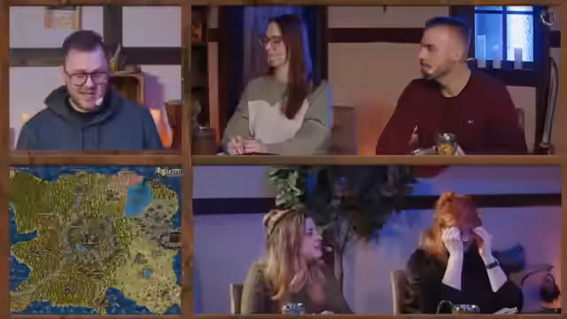 01:48:42Die Gruppe erreicht Maligols Schrecken, wo sie von einem älteren Elf mit einem goldenen Medaillon und einem kleinen Konstrukt namens Jasper begrüßt werden. Kane Stormhand, der Gründer von Maligols Schrecken, stellt sich Dahlia Evergreen und Salia vor. Er entschuldigt sich für Jaspers Eigenart und führt die Gruppe in den Vorraum, wo bereits einige Leute arbeiten. Kane betont die Gleichberechtigung aller Mitglieder. Der Raum ist neu gestaltet mit Tischen, Stühlen, einem Kamin und einer Sofaecke. Die Bar wird gerade erneuert, und die Weinflaschen stehen in der Küche. Kane fragt nach den Vorhängen und schlägt vor, die grauen Vorhänge durch schwarze oder bordeauxrote zu ersetzen, um eine gemütlichere Atmosphäre zu schaffen. Es wird überlegt, ob neue Möbel und Leuchter benötigt werden, um den Raum weiter aufzuwerten. Die Sofaecke ist bereits neu bestellt. Die Gruppe diskutiert über die Notwendigkeit, die Inneneinrichtung zu verbessern, um mehr Gäste anzulocken, und plant, die Möbel bei den Hüftgolds zu bestellen, wofür jedoch zusätzliches Geld benötigt wird. Es wird vorgeschlagen, Aufträge anzunehmen, um die Kosten zu decken. Die Veranda ist bereits in Auftrag gegeben, aber die Hüftgolds haben noch nicht damit begonnen.