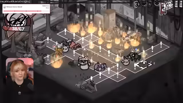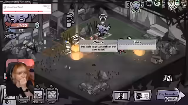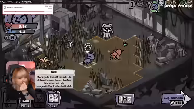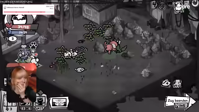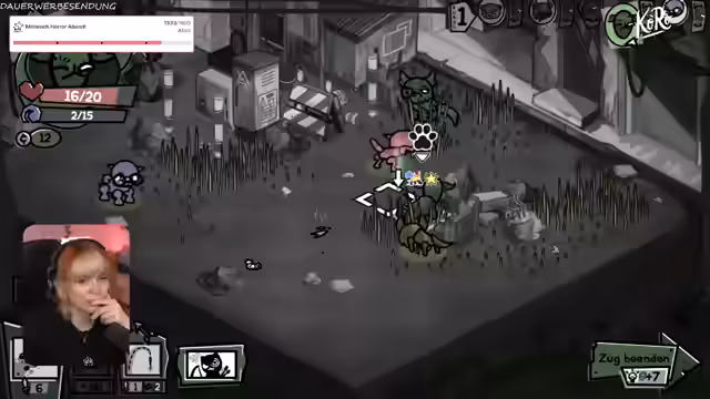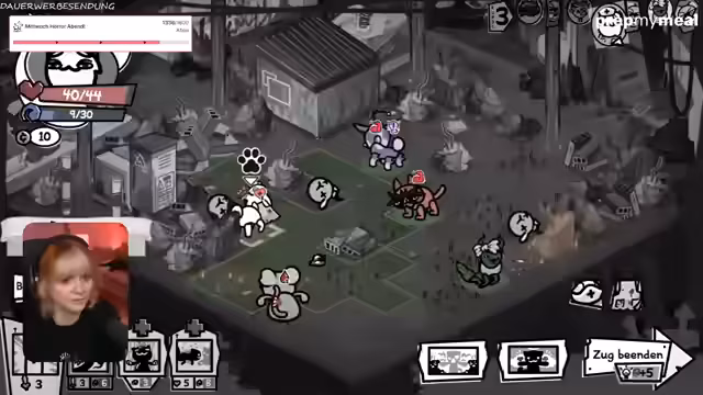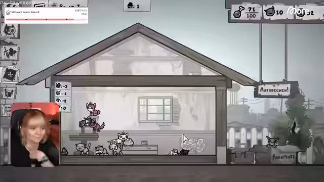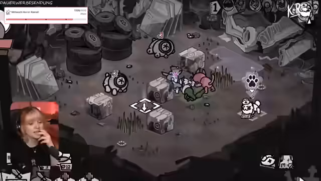 01:10:54Der Stream betritt ein neues Gebiet, das stark an Bomberman erinnert. Die Herausforderung besteht darin, Gegner zu bekämpfen, die explodieren und Schaden an benachbarte Einheiten verursachen. Streamer kämpft sich durch ein Feld voller Bomben und gegnerischer Ratten, wobei er immer wieder selbst in Gefahr gerät. Er stellt die Rettung einer Katze in den Vordergrund und sammelt so viele Vorräte wie möglich ein, was sich als schwierig erweist.