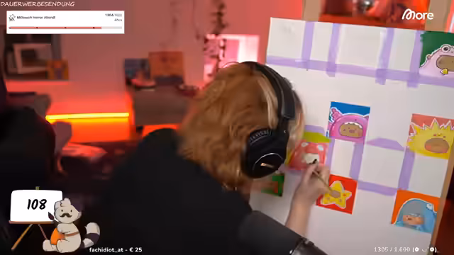 Es wurden handgemalte Kunstwerke im Shop angeboten, um finanzielle Verluste auszugleichen und die Urlaubszeit zu puffern. Parallel dazu fand ein kreativer Zeichenstream mit Holla statt. Gemeinsam wurde auf einer großen Leinwand mit diversen Motiven gearbeitet, wobei es zu einem kreativen Austausch über Maltechniken und -prozesse kam.