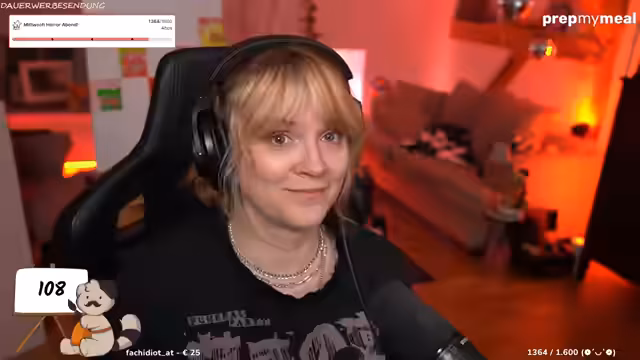 00:25:05 Danke schön für die Lieblingsstreamerin, danke schön. Wie viel kostet Butter? Oh mein Gott. En Morg, ja. Keuke Hellychen, wie geht's dir? Dänemark bin ich gespannt. Wir haben so wirklich so ein ganz kleines Ferienhäuschen, aber es wird cool. Die eine Seite ist komplett verglast im Wald. So, let's go Horrorfilme gucken. Ich werde das so bereuen. Also freue mich einfach. Ruhe, kaum Menschen, Strand, Isselwetter.