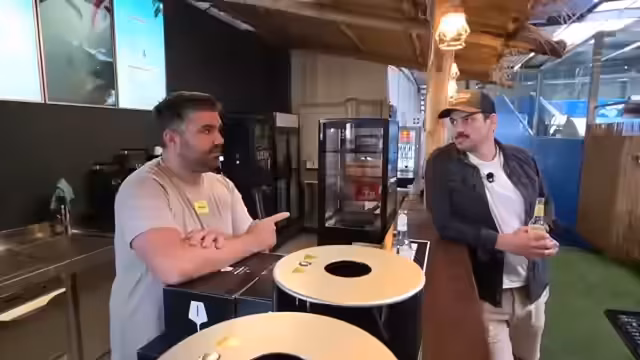 00:50:53Jeff, der Gründer, erklärt, dass der Termin für die Eröffnung noch nicht feststeht, da man auf Lieferanten angewiesen ist. Er lobt den Vibe der Halle mit Bambus und Monitoren, die er selbst geplant hat. Es gab technische Probleme mit dem Gimbal, die aber behoben wurden. WLAN ist vorhanden. Es werden Getränke angeboten, wobei man sich für Limonade von Elephant Bay entscheidet. Jeff berichtigt, dass er die Halle gemietet und umgebaut hat. Die Nutzungsänderung und die damit verbundenen Behördengänge waren ein großer Aufwand. Ohne diesen Behördenkram wäre die Halle wahrscheinlich schon früher eröffnet worden. Die Planung der Halle läuft seit drei Jahren. Fast wäre eine alte Tennishalle in Ratingen gekauft worden, aber man konnte sich nicht auf den Kaufpreis einigen. Die Suche nach einer geeigneten Immobilie gestaltete sich schwierig, da nicht überall eine Sporteinrichtung erlaubt ist. Die Eigentümer der jetzigen Halle waren von dem Projekt begeistert. Es gibt eine Kooperation mit Neander Energie, die den Strom für die Anlage liefert. Jeff führt durch die Halle, beginnend mit der Bar und der Anmeldung. Man kann sich online oder vor Ort anmelden. Neben dem Surfen gibt es Billard und Kicker. Der Kicker ist interaktiv mit verschiedenen Spielmodi, darunter ein Trinkspielmodus. Im ganzen Haus ist bargeldloses Bezahlen möglich.