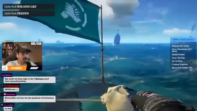 01:35:11Die Streamer sind intensiv in ein Schiffsgefecht in Sea of Thieves verwickelt. Sie kämpfen gegen ein gegnerisches Schiff, wobei Taktiken wie das Zielen auf den Rumpf, um Wasser eindringen zu lassen, und das Setzen von Ankern, um den Gegner aufzuhalten, eine zentrale Rolle spielen. Der Kampf wird als äußerst stressig beschrieben, bei dem beide Spieler oft sterben und das eigene Schiff Schaden nimmt. Die Gegner werden als unkoordiniert und unerfahren bewertet.
