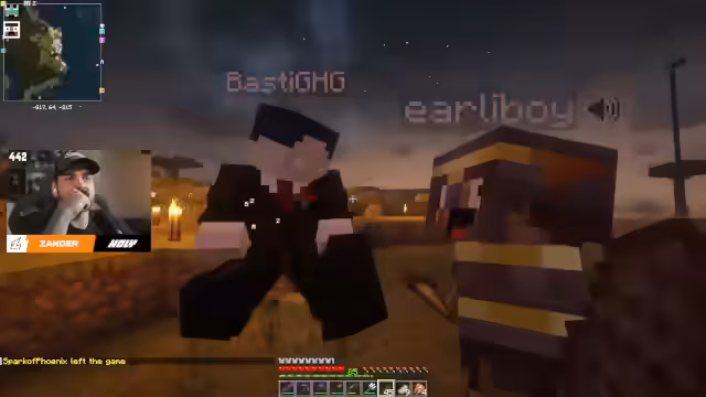 03:29:49Die Protagonisten treffen auf Henke, der sein „veganes Fischerdorf-Resort“ vorstellt, das sich noch im Bau befindet, aber bereits Bungalows zur Vermietung anbietet. Henke ist der alleinige Geschäftsführer seiner GmbH. Nach einem kurzen Austausch verabschieden sich die Protagonisten und verlassen das Dorf. Auf dem Rückweg wird die Rolle der Phantoms diskutiert, die möglicherweise die Protagonisten vor einem Angriff gerettet haben, indem sie die Aufmerksamkeit ablenkten. Die Sichtbarkeit des Todessterns über die gesamte Map wird bewundert. Es wird über die Texturen und Blöcke gesprochen, die im Spiel verwendet wurden, um bestimmte Gegenstände wie Koffer und Kugelschreiber darzustellen. Die Möglichkeit, einen Fake-Koffer zu erstellen, wird erörtert. Die Freude über das spontane, tiefe Roleplay wird ausgedrückt, da es im Gegensatz zu den letzten Jahren wieder eine zusammenhängende Geschichte ergab. Die Entscheidung, den Stab zugunsten des Gefallens aufzugeben, wird reflektiert, und die Hoffnung, den Gefallen sinnvoll einsetzen zu können, wird geäußert. Der Stream endet mit der Verabschiedung der Zuschauer und dem Hinweis auf weitere Streams am Freitag.