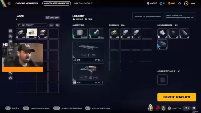 01:38:55Es wird über technische Probleme im Spiel Arc Raiders gesprochen, insbesondere das Problem mit dem Raustreten und Neustarten des Spiels. Der Streamer muss das Spiel neu starten, kann aber wieder beitreten. Er findet einen Schalldämpfer 2 und muss seine Ausrüstung verwalten, da er überladen ist. Die Gruppe beschließt, eine Runde zu beenden, um den Loot zu sichern und das Inventar zu leeren. Es wird erwähnt, dass die Cleanstone-Farm wahrscheinlich bereits genug Steine für den Großteil des Todesstern-Baus produziert hat. Die Möglichkeit, Smoothstone zu brennen, wird angesprochen, aber die Priorität liegt auf der Fertigstellung der Basis. Die Spieler bereiten sich auf die nächste Runde in Arc Raiders vor, während sie ihr Inventar organisieren und Ausrüstung verkaufen, um Platz zu schaffen.