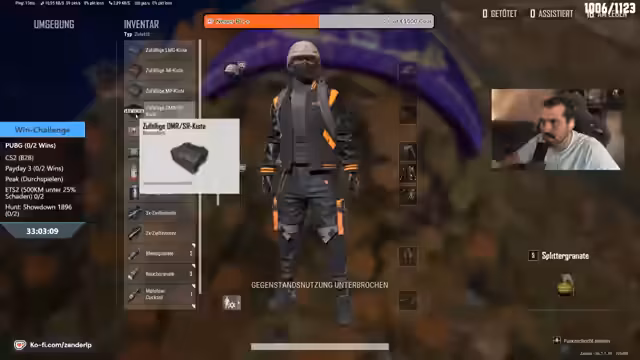 02:08:43Beim Start von PUBG treten erhebliche technische Probleme auf, darunter Abstürze und eine erkannte Datenintegritätsprüfung. Streamer muss das Spiel mehrmals neu starten und ist mit der Steuerung und dem Interface überfordert, das er als unübersichtlich und unpassend für ein Battle-Royale-Spiel beschreibt. Trotz der technischen Hürden beginnt er mit den Grundlagen des Spiels und betont die große Abhängigkeit vom eigenen Können und der Positionierung, während der Partner, ein PUBG-Anfänger, dem er Aim-Skills zutraut, hoffnungsvoll bleibt.