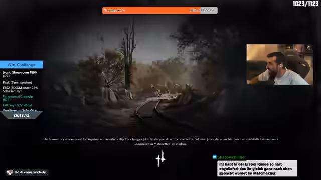 09:56:38Der Stream konzentriert sich auf die Erforschung des Spiels Hunt Showdown. Spieler lernen Mechaniken wie das Auffinden von Hinweisen, das Nutzen von Heilungsmitteln und das Verständnis des Matchmaking-Systems. Dabei wird festgestellt, dass die eigenen niedrigen Spielerlevel ein Problem darstellen, da man auf erfahrene Gegner trifft, was die Schwierigkeit erheblich erhöht. Eine Diskussion über die Balance des Spiels und den Nachteil für Neueinsteiger zieht sich durch die Abschnitte.