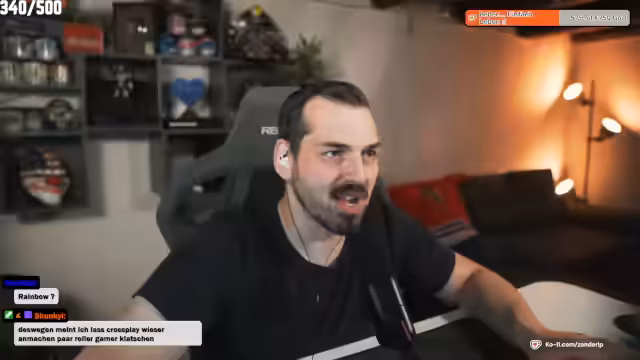 05:26:30Es beginnt mit lobenden Worten für die Spielbilder von DG, gefragt nach der Kameramarke. Nintendo wird erwähnt, aber nicht hochgezogen. Der Eisminister steht im Fokus, eine Diskussion über das Alter entsteht. Zander ist 23, Daya ebenfalls fast 30. Später spielt Angie den Greis, doch Zander wehrt sich gegen den Vorwurf, selbst 28 zu sein. Nach dem Erreichen von 13.200 Zuschauern fragt er sich, was seine 49 noch bedeuten, und macht sich über den 1,50 Meter-Empfang in Deutschland lustig.