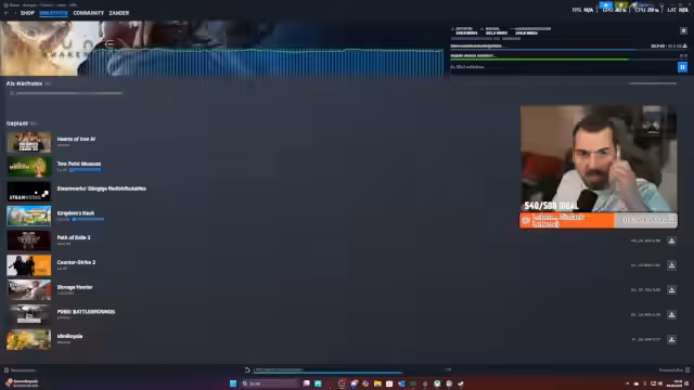 04:40:15Während des Spiels von Dune Awakening treten massive Performance-Probleme auf. Der Streamer berichtet von extrem niedrigen FPS-Werten, hoher CPU-Auslastung und instabilem Gameplay, was das Spielerlebnis stark beeinträchtigt. Er vermutet, dass es sich um ein Problem des Spiels oder seiner Systemkomponenten handelt, und ist von derzeitigem Zustand des Spiels nicht überzeugt.