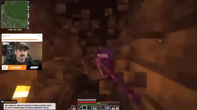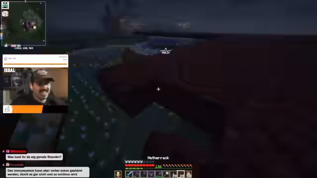 03:16:16Als Rache für einen vorherigen Trollakt von Fuchse tauschen Zander und sein Early Boy den kompletten Boden ihres Hauses gegen Netherrack und verbrannte Erde aus. Parallel dazu bereiten sie eine Netherite-Farm vor. Zander plant, auf Ebene 14 und 15 zu farmen, während er wegen seiner beginnenden Erkrankung die Motivation und Energie verliert und auf seine Verpflichtungen am Abend reagieren muss.