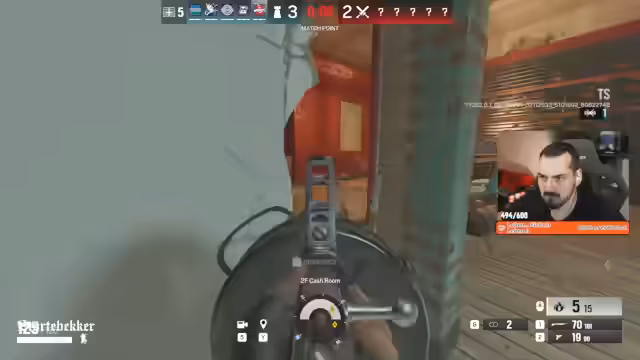 02:30:42Der Stream wechselt zum Spiel Rainbow Six Siege. Zander und Kevin testen die neue Version, Siege X. Die Soundgestaltung in der neuen Version wird als extrem gewöhnungsbedürftig und unangenehm empfunden, was die Wahrnehmung des Spiels beeinflusst. Trotzdem werden die neuen Sounds als leistungsfähiger und besser zum Einordnen beschrieben.