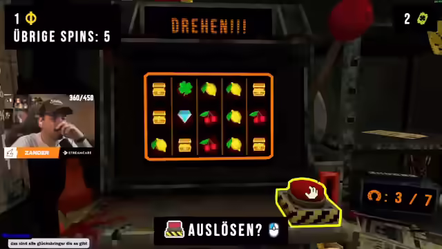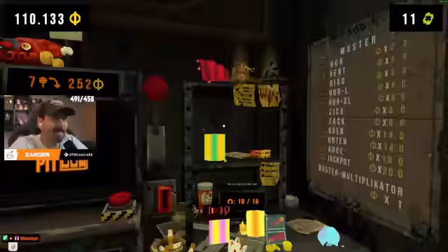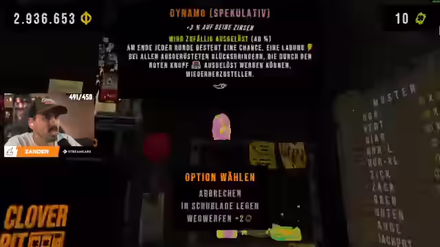 00:00:00Der Stream beginnt mit dem Spiel Cloverpit, einem neuen Roguelike-Kartenspiel auf Steam, das an Balatro erinnert. Das Spielprinzip basiert auf Glücksspielelementen, bei dem man durch das Ziehen von Karten verschiedene Kombinationen erzielt, um einen bestimmten Wert pro Runde zu erreichen und nicht zu sterben. Es gibt verschiedene Items, die mit Glückstickets freigeschaltet werden können, welche man pro Runde erhält. Diese Items beeinflussen das Spielgeschehen, indem sie beispielsweise mehr Glückstickets geben. Im Spiel gibt es auch zufällige Ereignisse, wie ein klingelndes Telefon oder freigespielte Schlüssel. Es wird erklärt, dass Symbole einen Multiplikator haben, der ihren Wert erhöht, wenn sie mehrfach vorkommen. Ein neues Feature ist der freigeschaltete Glücksbringer Nummer 1, der durch einen roten Knopf ausgelöst wird und gelbe Symbole zusätzlich auslöst. Es wird die Funktionsweise verschiedener Glücksbringer erläutert, wie das Zitronenbild, das die Häufigkeit von Zitronen erhöht, und ein Item, das Glück für den aktuellen Spin erhöht. Der Streamer testet verschiedene Kombinationen und erklärt, dass man nun die Möglichkeit hat, Items in eine Schublade zu legen, was in der Demoversion nicht möglich war. Man kann zwischen sieben Spins mit einem Glücksticket oder drei Spins mit zwei Glückstickets wählen. Aktuell hat man 75 Schulden und 30 eingezahlt, wobei man 7% Zinsen auf die Einzahlung erhält. Es werden sieben Spins gemacht, um den Wert zu erhöhen, wobei die aktivierte Karte Viererkombinationen verdoppelt. Nach der Runde hat man 24 Credits und zwei Glückstickets. Es wird überlegt, ob man die Zitronen nehmen soll und es werden nochmals sieben Spins gemacht.