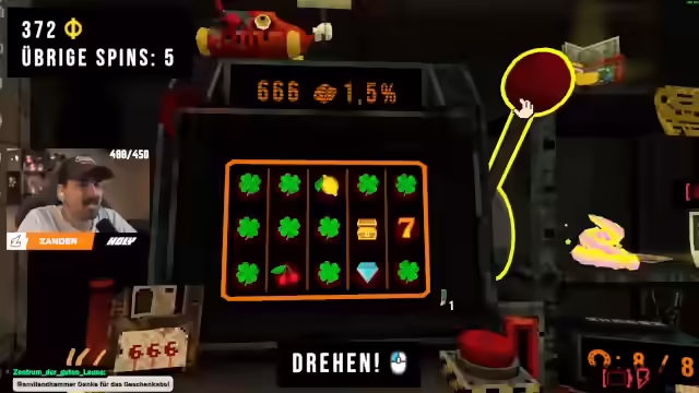 04:37:56Es wird überlegt, ob nur einmal rerollt werden soll, wobei die aktuellen Optionen als nicht optimal bewertet werden. Eine weitere Schublade wird entdeckt, die zusätzliche Möglichkeiten zur Aufstellung von Glücksbringern bietet. Es wird diskutiert, ob ein Item mit spekulativer Eigenschaft und 3% Zinsen genommen werden soll, aber letztendlich wird ein gratis Reroll vorgezogen, um einen weiteren Glücksbringer zu erhalten, was die Zinsen auf 19% erhöht. Trotz der hohen Zinsen wird entschieden, noch nicht aufzuhören. Ein Jackpot-Glücksbringer wird als krank, aber free, bewertet und genommen. Trotz des Wunsches nach Kirschen wird durch die dicke Katze ein hoher Gewinn erzielt. Es folgt eine Phase des Haderns mit Zitronen und der Überlegung, den Jackpot zu verdoppeln und die Zinsen zu erhöhen. Trotz des Wunsches nach Kirschen werden durch die dicke Katze hohe Gewinne erzielt. Es wird überlegt, ob 43.000 für einen Reroll investiert werden sollen, und der Fokus liegt weiterhin auf Kirschen. Durch die fette Katze werden hohe Gewinne erzielt, und es wird überlegt, ob das Spiel auf Kirschen ausgelegt werden soll. Nach einem Spin mit 684.000 wird betont, dass keine 666 kommen darf. Es werden 2 Millionen mitgenommen, um die Summe von 6,3 Millionen zu erreichen. Ein Item, das den Shop mit Glücksbringern auffüllt, wird als weniger wertvoll erachtet als mehr Platz. Es wird rerollt, aber die Ergebnisse sind nicht zufriedenstellend. Der Fokus liegt weiterhin auf Kirschen, und die hohen Zinsen werden als verrückt bezeichnet.