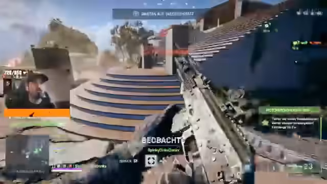 08:12:07Die Runde wird durch einen extrem engen Feuergeprägt. Der Streamer wird mehrmals niedergestreckt und muss von Teammitgliedern gerettet werden. Es kommt zu schnellen, chaotischen Scharmützeln in Häusern auf der Karte. Das Team hat Schwierigkeiten, Gegner zu eliminieren, und wird bei manchen Aktionen von einem anderen Team gestört. Das Gefühl der Überforderung ist spürbar, aber gleichzeitig werden auch Erfolge gefeiert, wie das Ausschalten von Gegnern mit gezielten Schüssen.