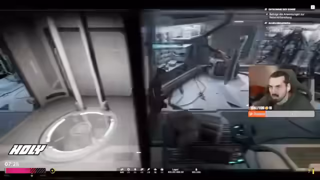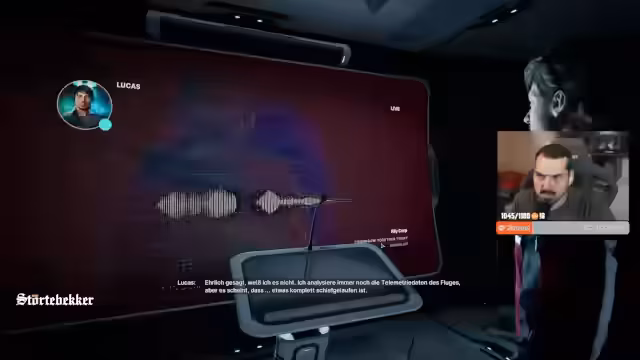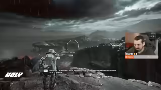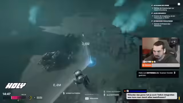 00:55:15Im Spiel kämpft der Streamer gegen Zeit, da ein Sonnensturm bevorsteht, der den Planeten zerstören wird. Er muss Ressourcen sammeln und die Basis rechtzeitig evakuieren. Dabei stellt er fest, dass ihm wichtige Ausrüstung wie ein Kletterhaken fehlt. Nach mehreren Versuchen und Rückschlägen läuft ihm die Zeit davon und sein Charakter stirbt an Strahlung. Der Streamer startet neu und bemerkt, dass die Aufgaben nun zurückgesetzt sind.