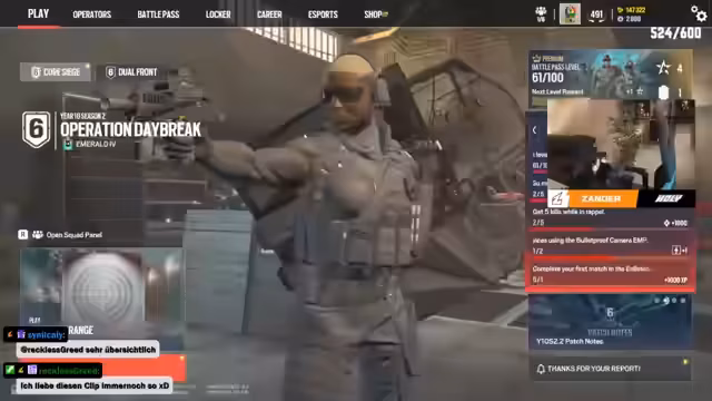 00:24:26Nachdem eine Einladung zum PUBG-Turnier aufgrund zeitlicher Konflikte abgelehnt wurde, startet der Stream in Rainbow Six Siege. Während des Spiels tauchen technische und inhaltliche Themen auf. Zum einen wird eine missverständliche Situation mit dem Internetanschluss der Schwiegermutter besprochen, bei der der Techniker falsche Informationen gab. Zum anderen wird die aktuelle Cheater-Situation im Spiel bewertet und der Gameplay-Fokus auf einen sicheren Sieg gelegt, bevor das Spiel verlassen wird.