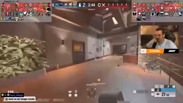 01:46:56Im laufenden Match von Rainbow Six Siege werden die verschiedenen Strategien und Positionen der beiden Teams genau analysiert. Der Streamer kommuniziert aktiv mit seinem Team und gibt Tipps, wie die gegnerischen Spieler, die sich in bestimmten Bereichen wie der Library oder Garage aufhalten, am besten bekämpft werden können. Trotz guter Bemühungen und einem schönen 3-Kill-Rundenende verlieren sie letztendlich das Match, was den Streamer jedoch ruhig hinnimmt.