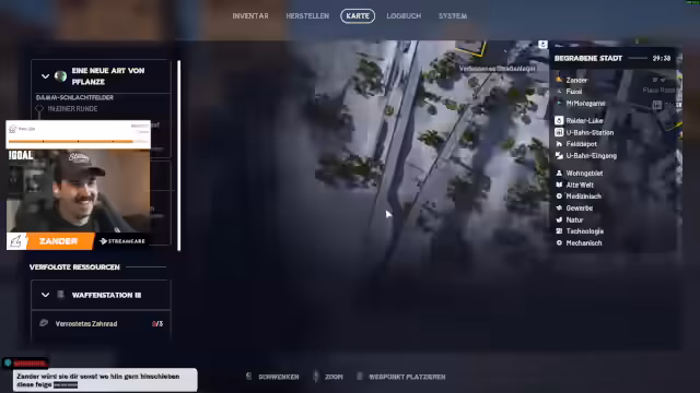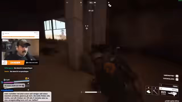 00:10:49Ein Zuschauer fragt nach Tipps zum Verkauf von Gegenständen im Spiel. Der Streamer erklärt, dass man das Lager aufwerten sollte, um mehr Platz zu haben, und dass man im Grunde alles verkaufen kann, da die Gegenstände beim Questen und Ausbauen immer wieder gefunden werden. Die Gruppe bespricht ihre aktuellen Quests, darunter das Suchen einer ARC-Sonde und eines Hundehalsbands. Der Streamer bietet an, das Hundehalsband zu besorgen. Sie diskutieren über die Effektivität verschiedener Waffen, wie die Ferro 1 als Single-Shot-Sniper, die gut zum Zerstören von Schilden geeignet ist, und die Stitcher als Sekundärwaffe. Es wird auch über Munitionsmanagement gesprochen, wobei der Streamer empfiehlt, nur eine begrenzte Menge mitzunehmen, da Munition leicht nachproduziert werden kann. Weiterhin wird die Beutemarke als nützliches Augment erwähnt, um mehr Gegenstände mitnehmen zu können, und die Möglichkeit, graue Kisten beim Händler kostenlos zu tauschen. Der Streamer gibt Ratschläge zur optimalen Ausstattung mit Bandagen und Schildaufladern für den Kampf, während er sich über die deutschen Bezeichnungen der Gegenstände amüsiert, da er das Spiel selbst auf Englisch spielt.