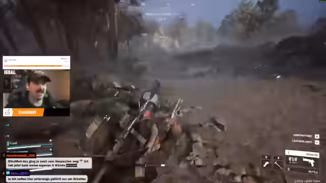 01:09:02Der Streamer entdeckt überraschenderweise die Funktion der Taschenlampe im Spiel, nachdem ein Zuschauer ihn darauf aufmerksam gemacht hat, und amüsiert sich darüber, dass er dies im Tutorial nicht bemerkt hat. Die Gruppe konzentriert sich auf die Quest, undichte Hydraulikrohre zu reparieren, und findet erfolgreich ein Hundehalsband. Sie planen, weitere Questgegenstände wie Fische in Gebäuden zu finden. Es kommt zu einer weiteren humorvollen Interaktion, bei der der Streamer scherzhaft seine Mitspieler 'hasst', was zu einem spielerischen Schlagabtausch führt. Sie finden weitere Hundehalsbänder und versuchen, die Quest mit den Explosionsgranaten abzuschließen. Währenddessen hören sie Schüsse und vermuten Gegner in der Nähe. Sie finden Kaktusfeigen und einen Raider Geheimvorrat, der jedoch leer ist. Die Suche nach Oliven gestaltet sich schwieriger. Die Gruppe gerät erneut in einen Kampf, wird von hinten angeschossen und von campern am Extraktionspunkt überrascht. Der Streamer ist frustriert über die 'arschige' Taktik der Gegner, freut sich aber, dass er eine Kaktusfeige retten konnte und die Granaten-Quest für ihn gezählt hat.