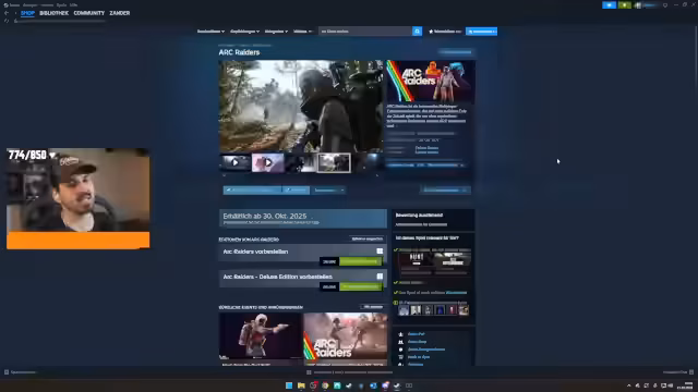 00:08:54Arc Raiders ist im Rahmen eines Server-Slam als finale Version verfügbar. Der Streamer äußert sich sehr positiv zum Entwicklerstudio Embark, aus Ex-DICE-Mitarbeitern bestehend, und erwartet einen großen Release-Erfolg. Das Spiel wird am 30. Oktober veröffentlicht und ist für 39,99 Euro erhältlich. Es existiert eine Deluxe Edition für 59 Euro, die zusätzliche Skins und Ingame-Währung bietet. Der Fokus liegt auf dem kommerziellen Erfolg und der langfristigen Support-Strategie des Studios.