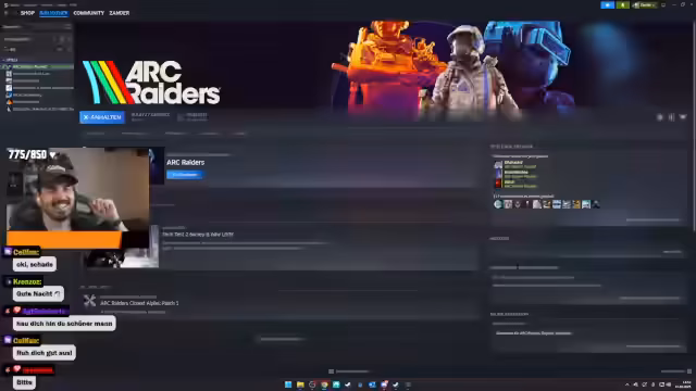 06:03:56Nach rund sechs Stunden Stream teilt der Streamer der Community mit, dass er sein Spiel beenden und sich ausruhen muss. Er begründet dies mit extremer Erschöpfung, auf die er nur vier Stunden Schlaf zurückführt. Obwohl er "extrem Bock" auf das Spiel hat, kann er sich nicht mehr konzentrieren und macht einen "Power Nap" für einige Stunden für notwendig. Er verspricht, später, sobald er wieder wach ist, live zurückzukehren und eine weitere Runde Ark Raiders zu spielen. Der Stream endet mit seinen Dankesgrüssen an die Community.