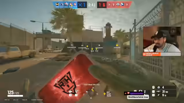 02:45:20Im weiteren Verlauf des Rainbow Six: Siege-Streams zeigt der Streamer taktische Manöver und Kommunikation mit seinem Team. Es kommt zu technischen Problemen wie EMP-Effekten und gestörten Drohnenfunktionen. Der Streamer nutzt verschiedene Operator-Fähigkeiten und Gadgets strategisch, um seine Gegner zu überlisten oder defensiv Positionen zu sichern.