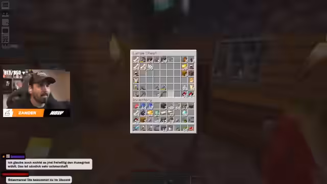 03:56:39Die Unterhaltung wechselt zum Thema Kochen und Anime, als Zander nach Kevin Empfehlungen für Spiele mit Koch-Thema sucht. Nach einigem Hin und Her finden sie heraus, dass es sich um die Anime-Serie „Food Wars“ auf Netflix handelt. Parallel dazu konzentriert sich Zander auf das Minecraft-Spiel, wo er sich um die Verzauberung seines Tridenten kümmert. Er handelt mit einem anderen Spieler, um die notwendigen Erfahrungspunkte zu sammeln, und verzaubert den Dreizack mit „Riptide 3“. Das Item wird umgetauft in „König Tritons Dreizack“, was im Chat als „sehr geil“ begrüßt wird.