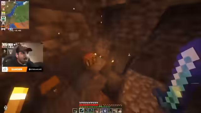 05:14:17Es findet ein konkreter Ressourcenaustausch statt bei dem der Streamer einen seltenen, verzauberten Trident von Lizor leiht, um ihn für Erkundungstouren zu nutzen. Dies unterstreicht das kooperative Element des Streams. Gleichzeitig wird über den Fortschritt im Spiel gesprochen, wie das Sammeln von XP, der Handel mit verzauberten Büchern und die Verzauberung von Ausrüstung. Der Streamer drückt seine Freude über das Finden einer neuen Schallplatte (Chicken Jockey) aus, was einen Höhepunkt im Gameplay darstellt und zu einer spontanen Einladung an andere Spieler zu einer "Platten-Party" führt.