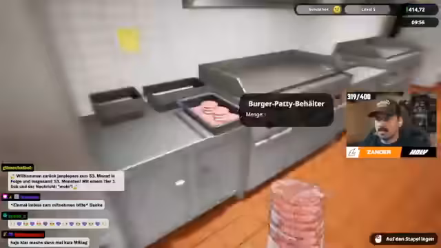 00:05:58Der Streamer begrüßt seine Zuschauer und kündigt den heutigen Gast G-Time für den Fastfood-Simulator an. Nachdem technische Vorkehrungen wie das Einrichten des Stream-Setups getroffen sind, wird das Spiel gestartet. Beide Spieler erstellen eine private Lobby für zwei Spieler mit einer normalen Schwierigkeitsstufe und legen sich auf den Namen des Restaurants fest, der schnell zu 'Hängebauchsau' wird. Die erste Aufgabe ist die Organisation der Küche, die Einrichtung der Vorräte und das Verständnis der grundlegenden Spielmechaniken.
