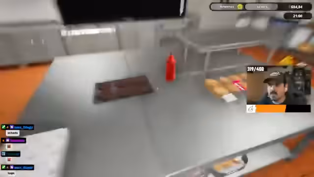 00:11:11Nach dem kurzen Intro starten die beiden in den ersten Betriebstag. Der Streamer übernimmt die Rolle des Restaurantleiters, der Bestellungen annimmt und für den Nachschub der Zutaten sorgt, während G-Time als Koch für die Zubereitung der Burger zuständig ist. Zuerst wird ein trockener Testlauf ohne Zutaten durchgeführt, um den Ablauf zu verstehen. Anschließend werden die ersten Burgerpatties zubereitet und die ersten Kunden mit trockenen Burgern bedient, was zu einem ersten, minimalen Gewinn führt.