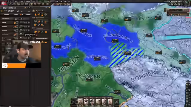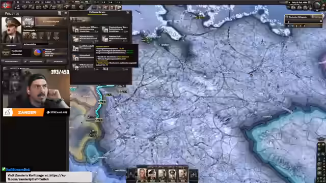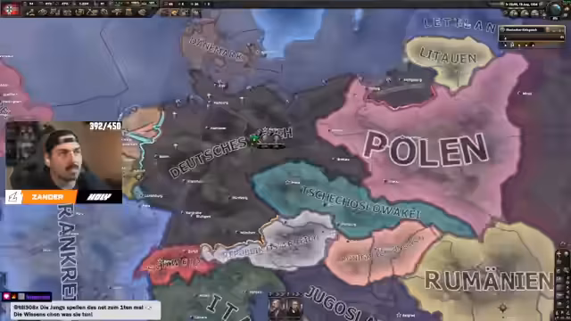 08:06:19Es wird festgestellt, dass ein Chatteilnehmer Ahnung hatte, aber von Numira zum Schweigen gebracht wurde. Es wird überlegt, ein Kriegsziel gegen Österreich zu erstellen. Der Wert, der die relative Größe der deutschen Armee im Vergleich zur österreichischen Armee bestimmt, sinkt weiter. Himmler wird als potenzieller Kandidat für eine Regierungsposition in Betracht gezogen, und es wird überlegt, Gummiverarbeitung zu fördern. Der Einsatzstab Rosenberg wird ermächtigt, was Auswirkungen auf eroberte Gebiete hat. Es werden weiterhin Truppen ausgebildet, und die Spezialeinheiten werden verstärkt. Der Kriegsziel gegen Österreich wird gerechtfertigt, und zur Sicherheit wird die Grenze zu Dänemark gesichert. Ein kurzer Ausflug wird unternommen. Nach der Rückkehr wird die Artillerie auf die verwässerte Arti umgestellt, um die Fabriken zu entlasten. Der Heidrich wird erneut eingesetzt, um die Republik Österreich zu destabilisieren. Reichskommissariat Niederlande wird in Erwägung gezogen, aber die Auswirkungen sind unklar. Es wird überlegt, was nach dem Anschluss geschehen soll, z. B. Sudetenland fordern oder Ostgebiete zurückfordern. Die U-Boote werden verbessert, und es wird festgestellt, dass zu wenig LKWs vorhanden sind. Es wird gehofft, dass Österreich dem Anschluss zustimmt. Die Ostgebiete werden zurückgefordert, und die Flieger werden nach Berlin bzw. Niederschlesien verlegt. Die Truppen in Österreich werden verstärkt, und die Speziarmee wird verstärkt. Ein weiterer Spion wird rekrutiert, und es wird beschlossen, vorerst keine Truppen auszubilden, um Ressourcen aufzufüllen.