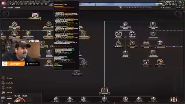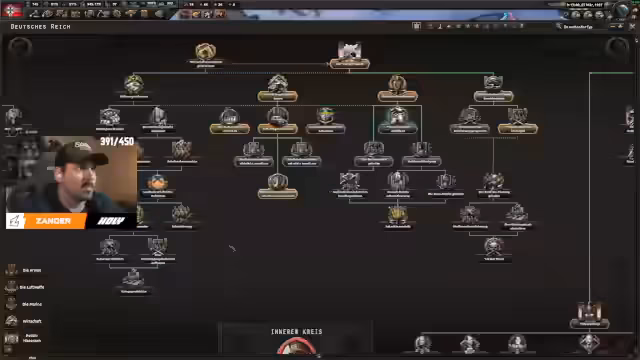 07:49:46Österreich verbietet die NSDAP, was die Frage aufwirft, ob militärische Maßnahmen ergriffen werden müssen. Erdölverarbeitung wird als notwendige Forschung identifiziert, um hohe Benzinsubventionen zu ermöglichen. Es wird beschlossen, vorerst keine Forschung abzubrechen, sondern die laufenden Projekte abzuschließen. Die Armee in Österreich wird inspiziert und ein Spionagenetzwerk wird in Erwägung gezogen. Es wird festgestellt, dass der Anschluss Österreichs immer noch nicht möglich ist, trotz einer großen Armee. Die Armee ist mindestens 24 Mal größer als die österreichische, was die Situation frustrierend macht. Truppen werden ausgehoben und Panzerdivisionen werden unerwartet erstellt. Eine Spezialeinheit namens "Spätzarmee" wird ausgebildet, und es wird erneut festgestellt, dass der Anschluss Österreichs nicht möglich ist. Es wird beschlossen, die Erdölverarbeitung abzuwarten und das Führerprinzip zu aktivieren. Massenproduzierte U-Boote werden gefördert, und die Armee wird in "Spezi-Armee" umbenannt. Es wird überlegt, eine weitere Armee "Lecker Bierchen" zu nennen und überschwere Haubitzen zu forschen, obwohl deren Nutzen unklar ist.